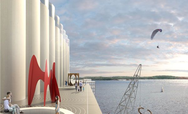 Kunstsilo skal være spektakulær, men også innbydende. Eksklusiv, men med lav terskel. Det blir ingen store trapper på vei inn. Ingen tunge dører. I første etasje vil hele fasaden være av glass, med en naturlig passasje gjennom bygget, hvor man også kan sitte og jobbe eller lese. På utearealet kan man henge med venner, sitte og spise ved kafeen eller bare finne seg en benk og nyte det flotte området.